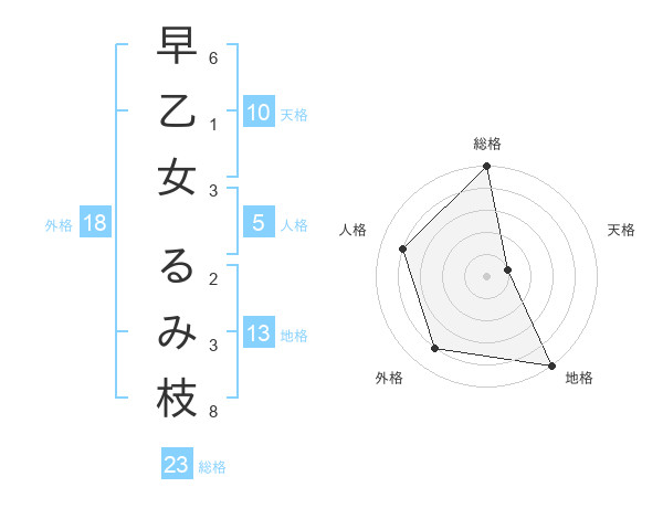 早乙女 るみ枝さんの総格は23画の5点!