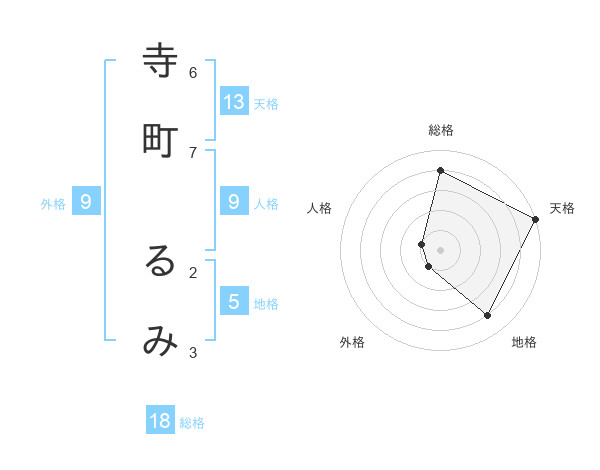 寺町 るみさんの天格は13画の5点!