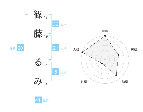 篠藤 るみさんの総格は41画の5点!