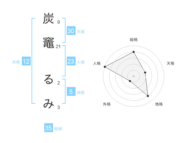 炭竈 るみさんを姓名の画数から五運を鑑定