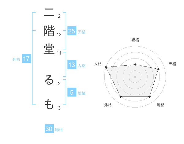 二階堂 るもさんを姓名の画数から五運を鑑定