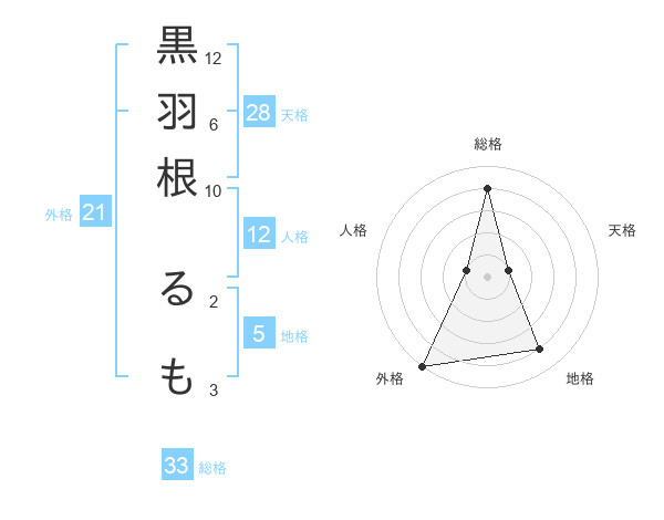 黒羽根 るもさんの総格は33画の4点!