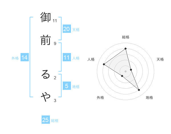 御前 るやさんの総格は25画の4点!