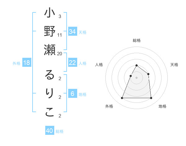 小野瀬 るりこさんを姓名の画数から五運を鑑定