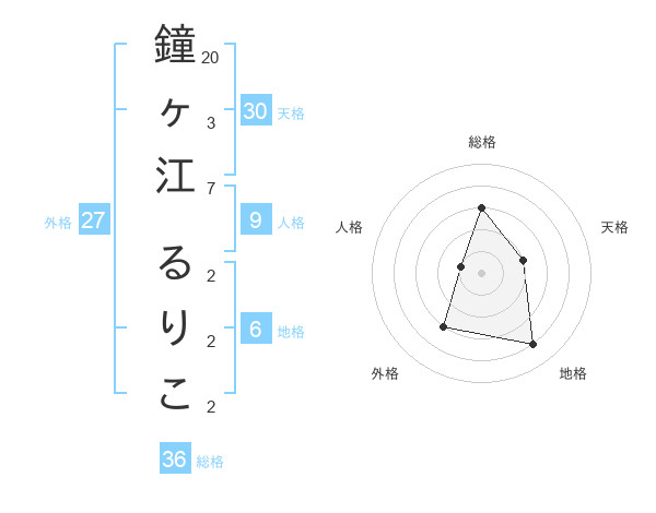 鐘ヶ江 るりこさんを姓名の画数から五運を鑑定