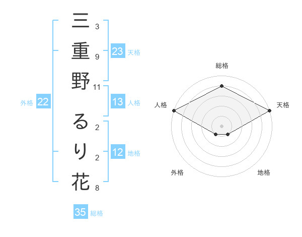 三重野 るり花さんを姓名の画数から五運を鑑定