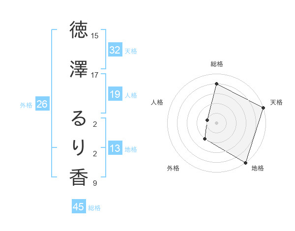 徳澤 るり香さんの総格は45画の4点!