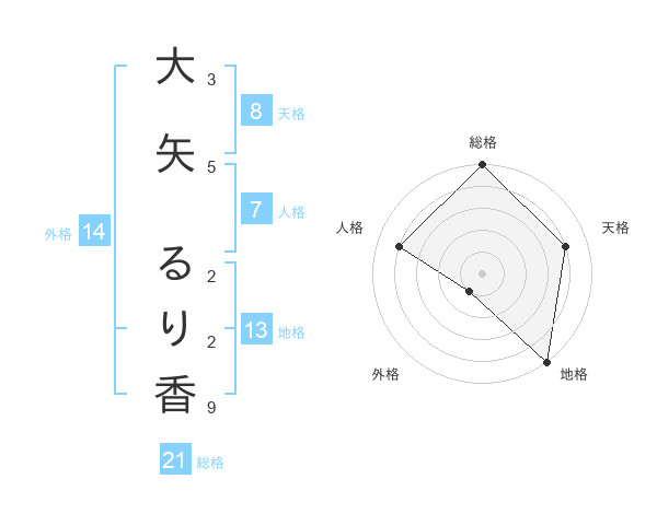 大矢 るり香さんを姓名の画数から五運を鑑定