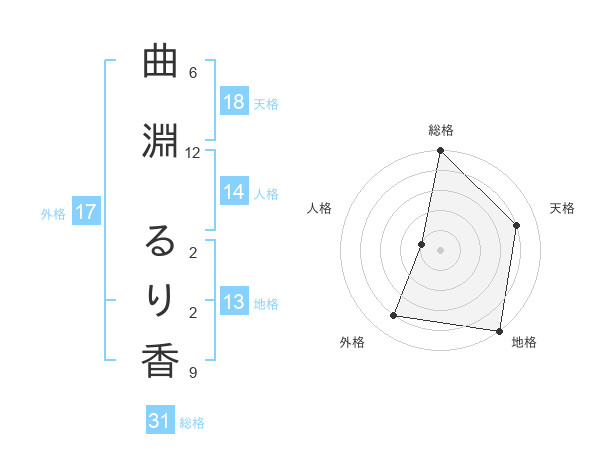 曲淵 るり香さんを姓名の画数から五運を鑑定