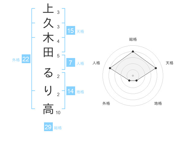 上久木田 るり高さんを姓名の画数から五運を鑑定