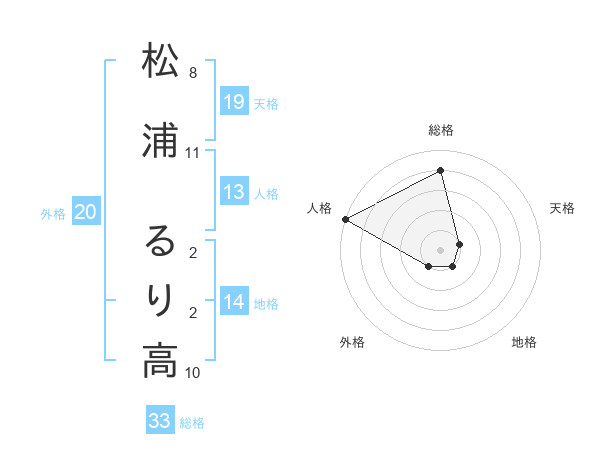 松浦 るり高さんを姓名の画数から五運を鑑定