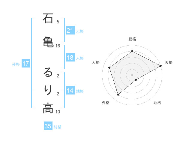 石亀 るり高さんを姓名の画数から五運を鑑定