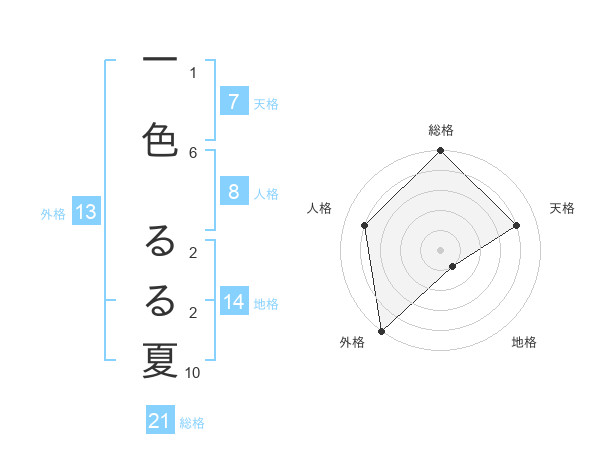 一色 るる夏さんの外格は13画の5点!