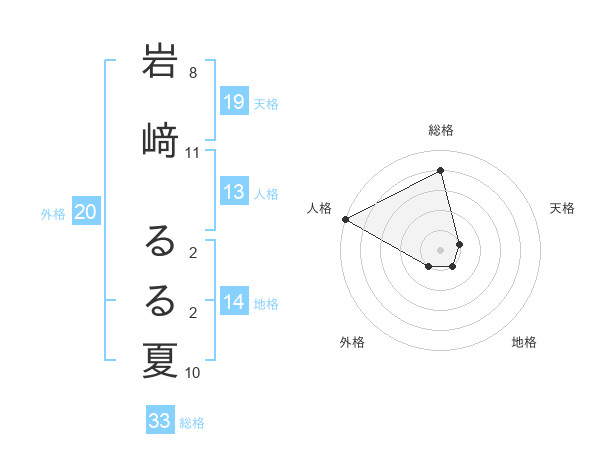 岩﨑 るる夏さんを姓名の画数から五運を鑑定