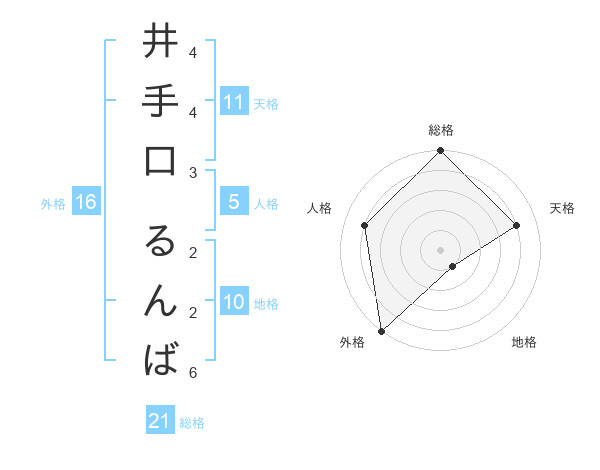 井手口 るんばさんを姓名の画数から五運を鑑定