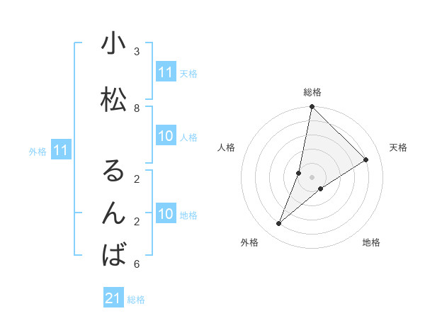 小松 るんばさんの天格は11画の4点!