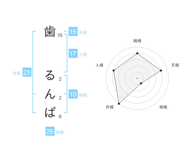 歯 るんばさんの外格は23画の5点!