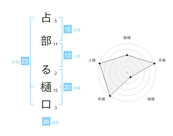 占部 る樋口さんの天格は16画の5点!