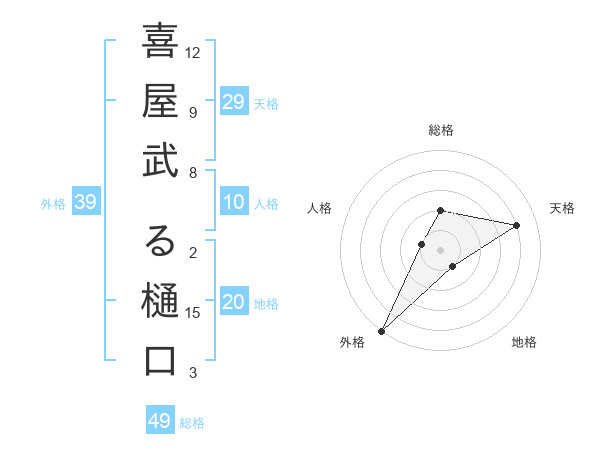 喜屋武 る樋口さんの外格は39画の5点!
