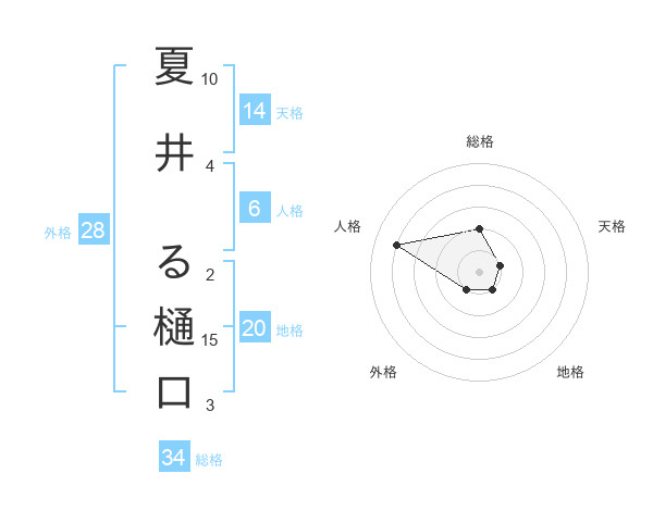 夏井 る樋口さんの総格は34画の2点!