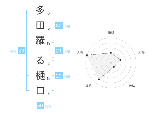 多田羅 る樋口さんの総格は50画の2点!