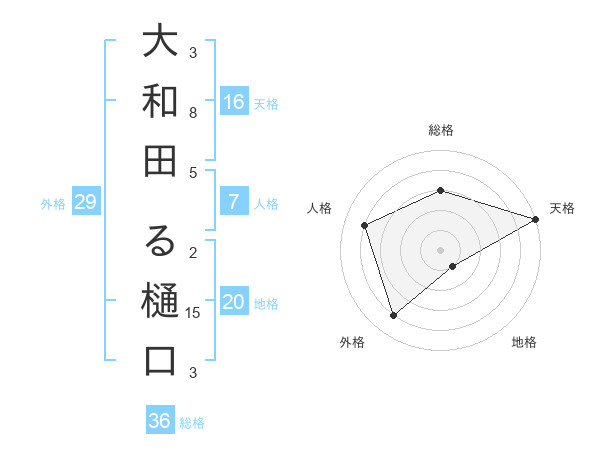大和田 る樋口さんを姓名の画数から五運を鑑定