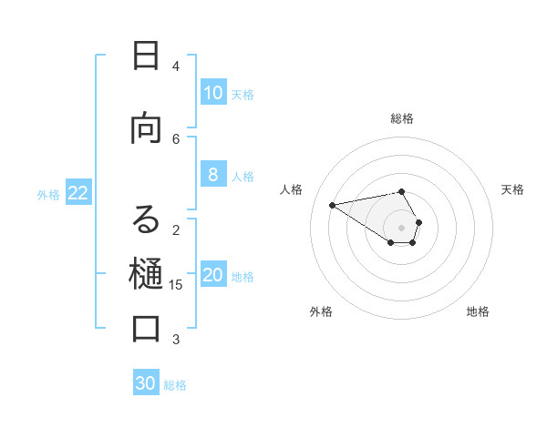 日向 る樋口さんの地格は20画の1点!