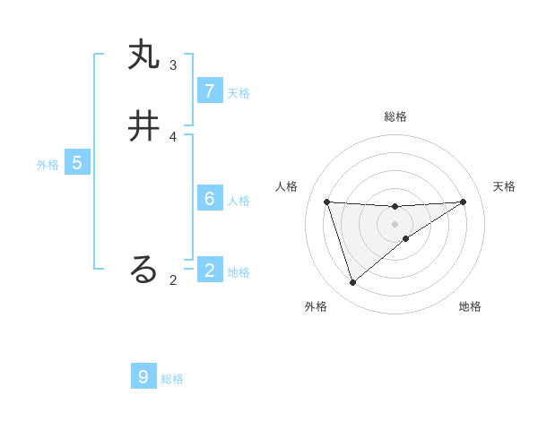 丸井 るさんの総格は9画の1点!