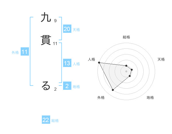 九貫 るさんの総格は22画の1点!