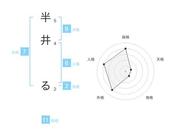 半井 るさんの総格は11画の4点!