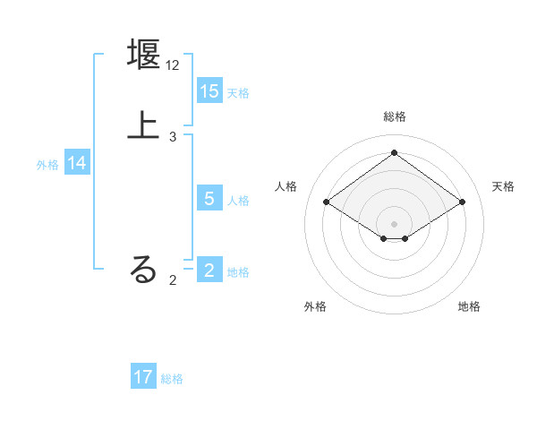堰上 るさんの総格は17画の4点!