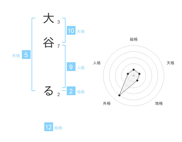 大谷 るさんの外格は5画の4点!