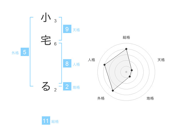 小宅 るさんの総格は11画の4点!