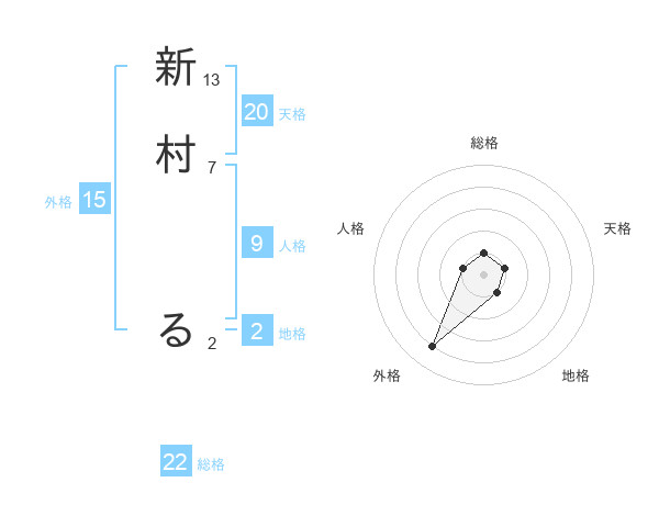 新村 るさんの総格は22画の1点!