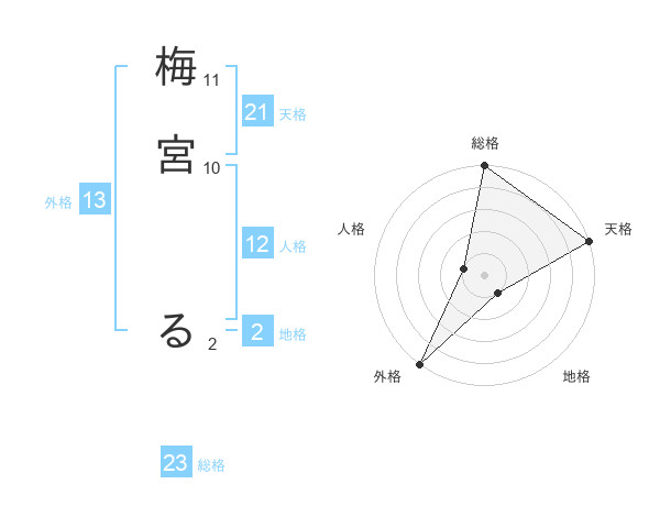 梅宮 るさんの外格は13画の5点!