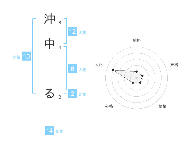 沖中 るさんの総格は14画の1点!