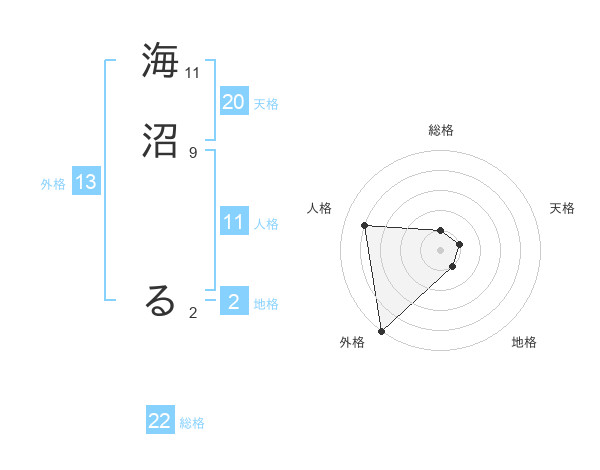 海沼 るさんの総格は22画の1点!
