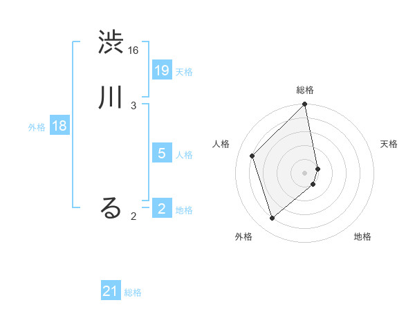 渋川 るさんの総格は21画の5点!