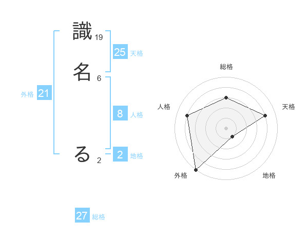 識名 るさんの外格は21画の5点!