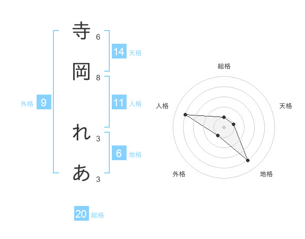 寺岡 れあさんの総格は20画の1点!