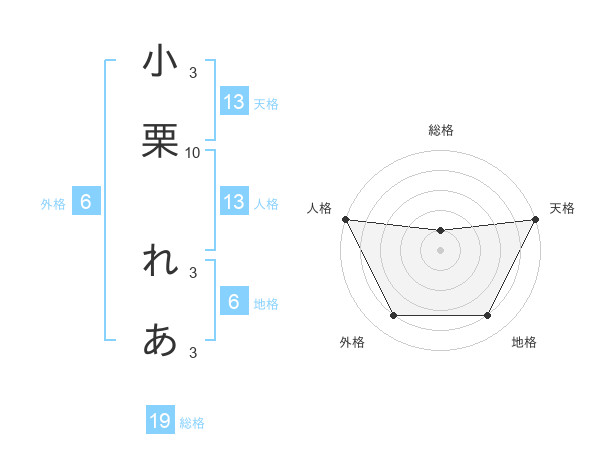 小栗 れあさんの天格は13画の5点!
