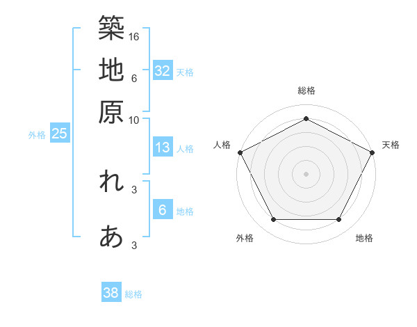 築地原 れあさんの総格は38画の4点!