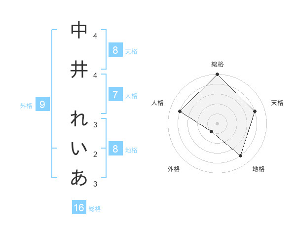 中井 れいあさんの総格は16画の5点!
