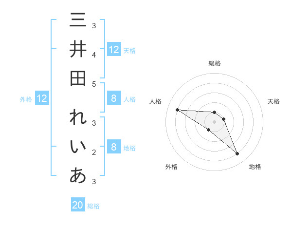 三井田 れいあさんを姓名の画数から五運を鑑定