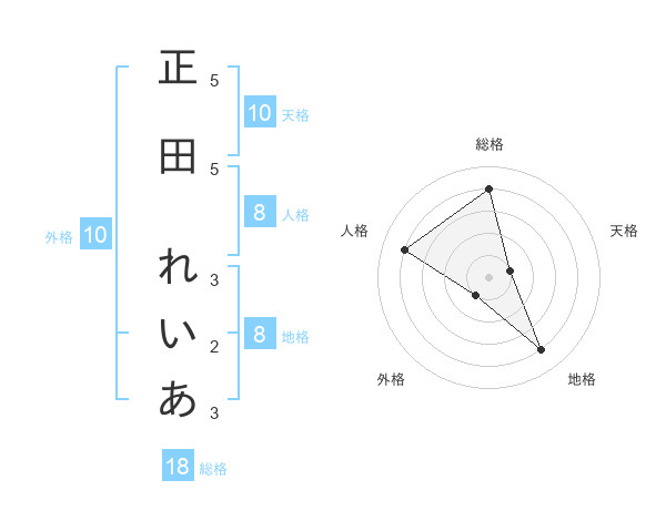 正田 れいあさんの外格は10画の1点!