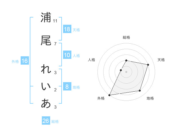 浦尾 れいあさんの天格は18画の4点!