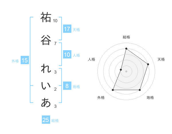 祐谷 れいあさんを姓名の画数から五運を鑑定