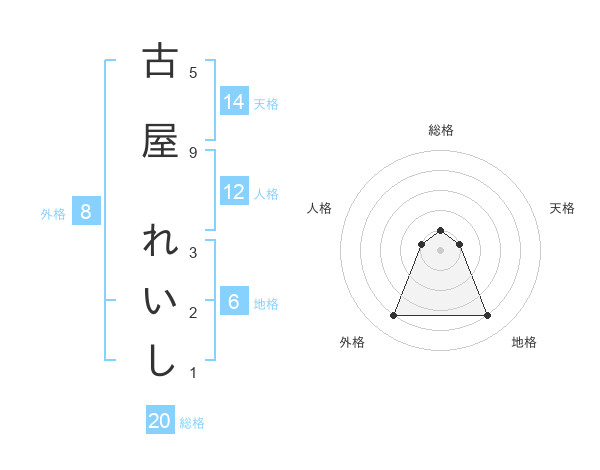 古屋 れいしさんの総格は20画の1点!