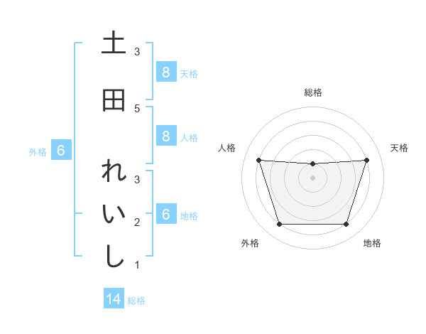 土田 れいしさんの天格は8画の4点!