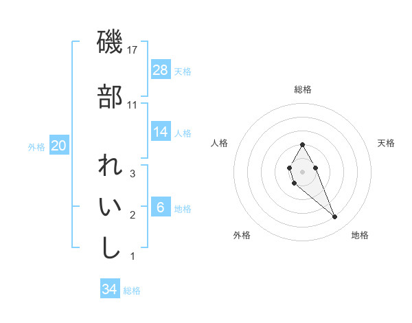 磯部 れいしさんの総格は34画の2点